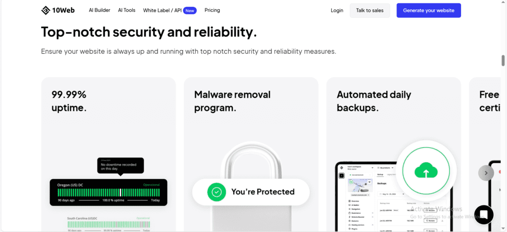 This makes 10Web ideal for non-technical users who don’t want maintenance headaches.