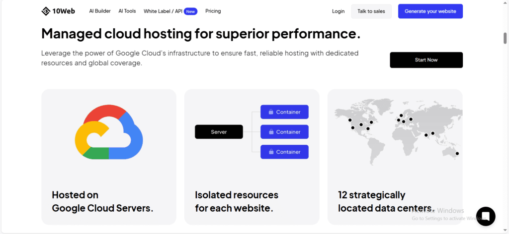 10Web hosting is powered by Google Cloud Platform (GCP).