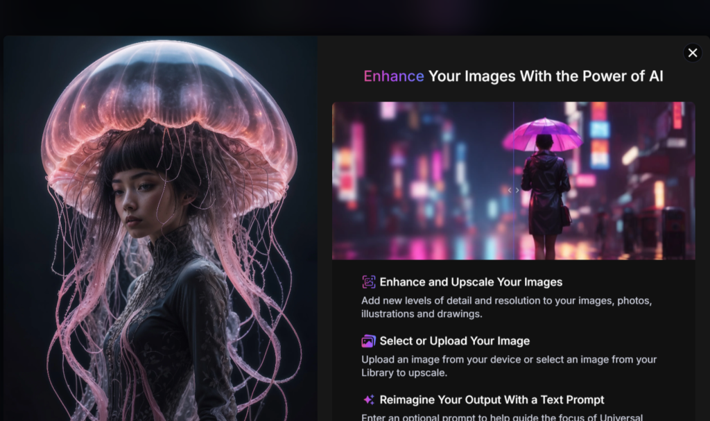 Leonardo AI includes built-in upscaling and enhancement tools that improve image resolution and clarity. This makes generated images suitable for high-quality prints, websites, ads, and professional use, without losing details or sharpness.